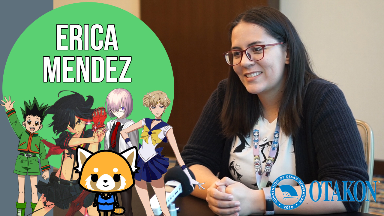 Erica Mendez is an incredibly busy voice actress—she’s had roles in productions such as Aggretsuko (Retsuko), KILL la KILL (Ryuko), Hunter x Hunter (Gon), Sword Art Online II (Yuuki), the new Viz Media dub of Sailor Moon (Sailor Uranus), Little Witch Academia (Akko), Seven Deadly Sins (Diane), Love Live (Nico), and Fate/Grand Order (Mash), just to name a few.