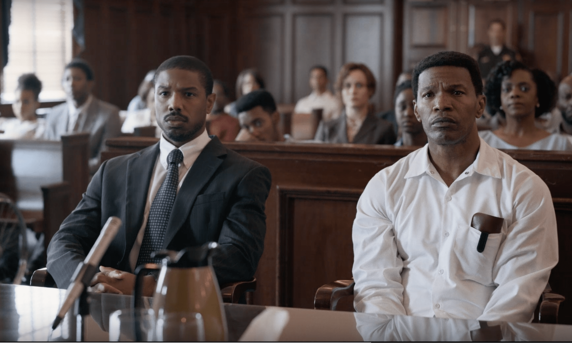 We see, first, the timid intern some 800-miles south of Harvard to meet a man his own age on death row. We see, then, the execution of Herb Richardson, a veteran who developed PTSD during Vietnam and proceeded to detonate a bomb on a lover’s porch. Finally, we see Walter McMillan (Jamie Foxx) run the gauntlet of police and legal implements to win freedom for a crime he did not commit, that canonic Southern Sin of murdering a white woman whilst Black. This story dominates Just Mercy, and exposes features of the legal system in Monroeville, AL (the literary and extra-literary site of To Kill a Mockingbird) that the average viewer would not believe existed in the 1980s.